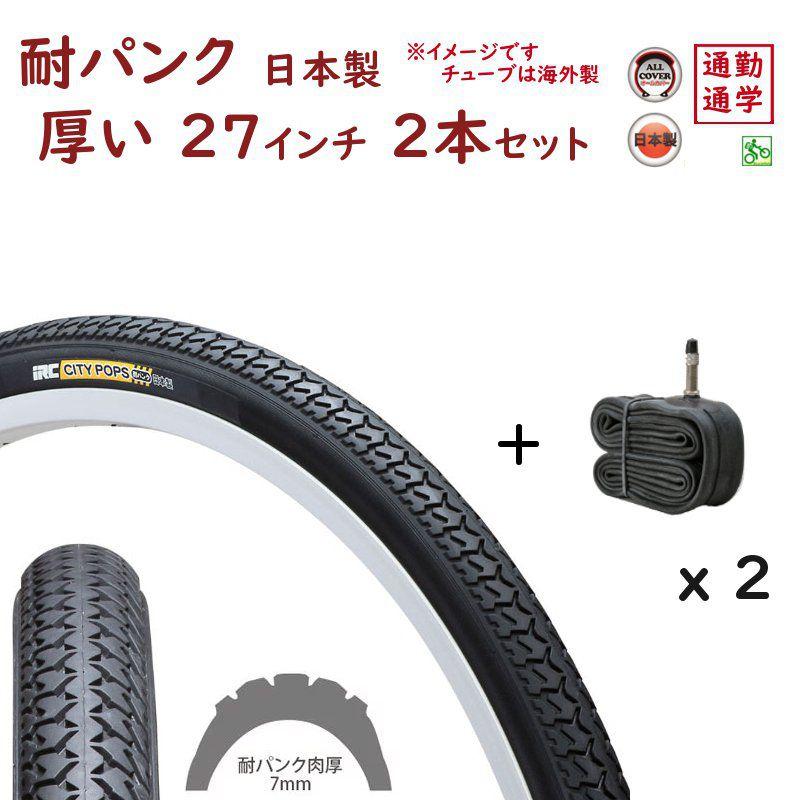 予告 5日は5のつく日 .自転車タイヤ 27インチ 2本 パンクしにくい IRC 自転車タイヤ チューブ 各2本 シティポップス 耐パンク